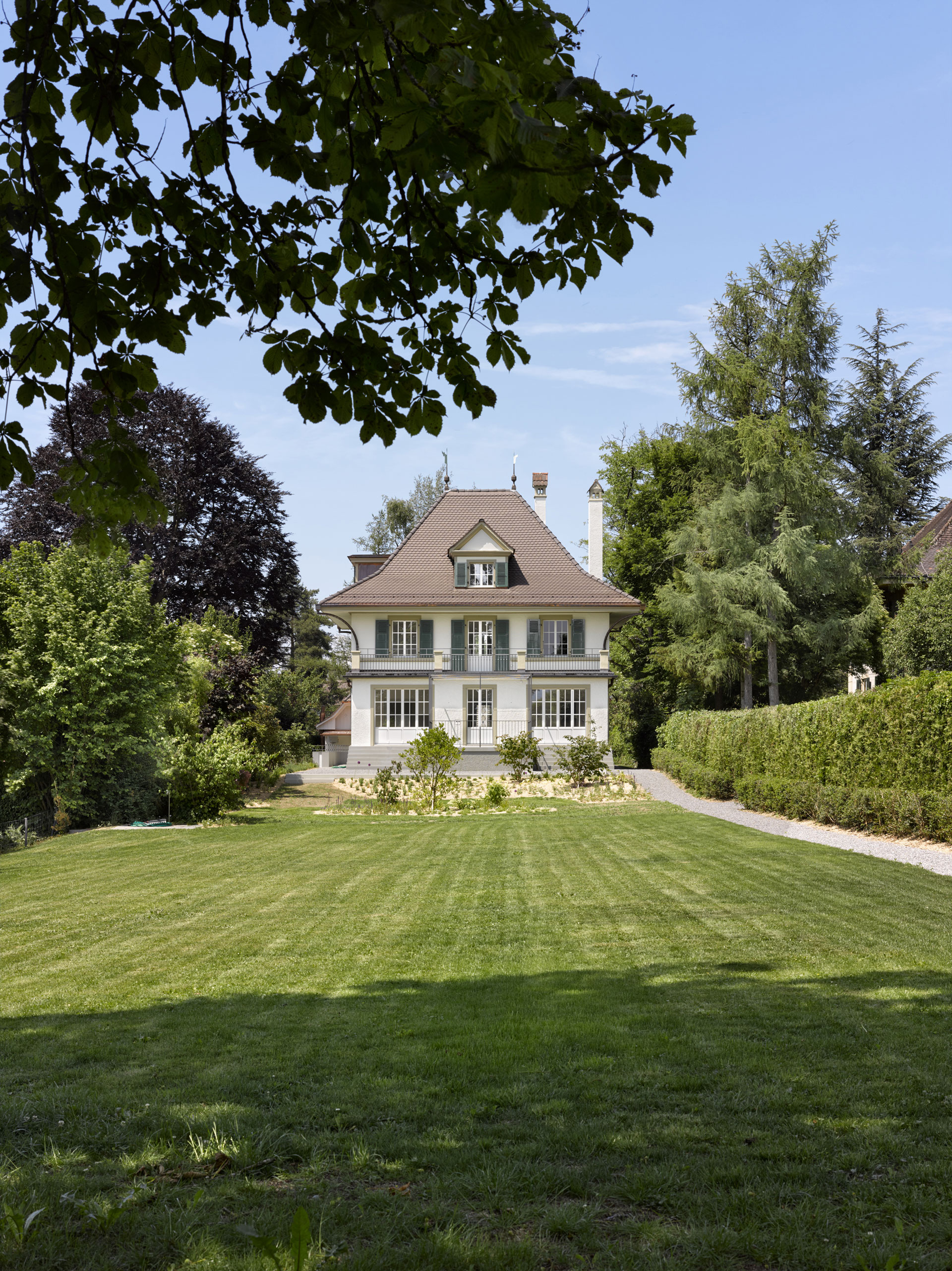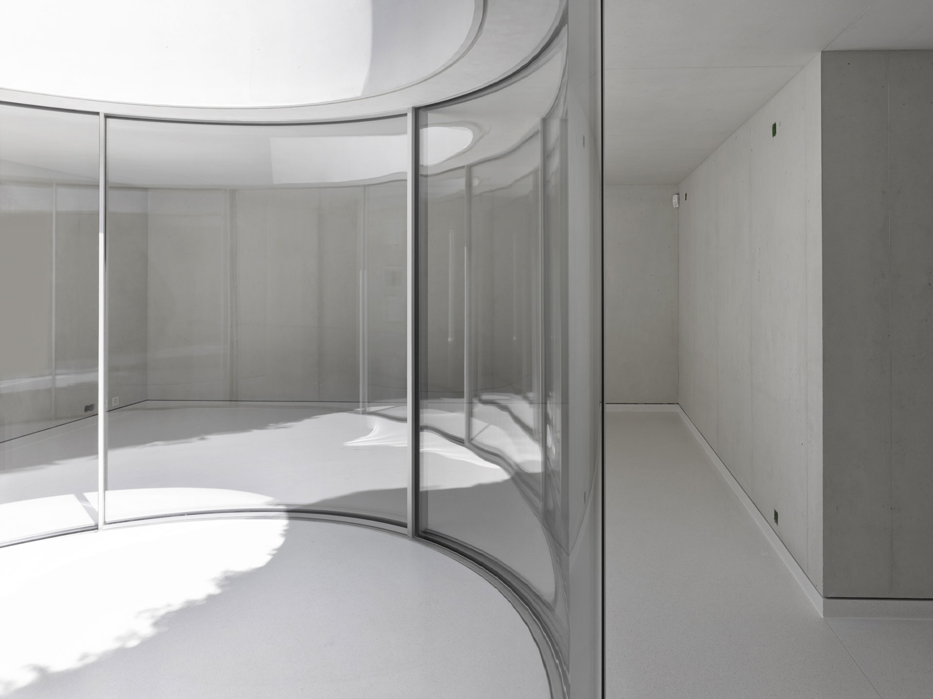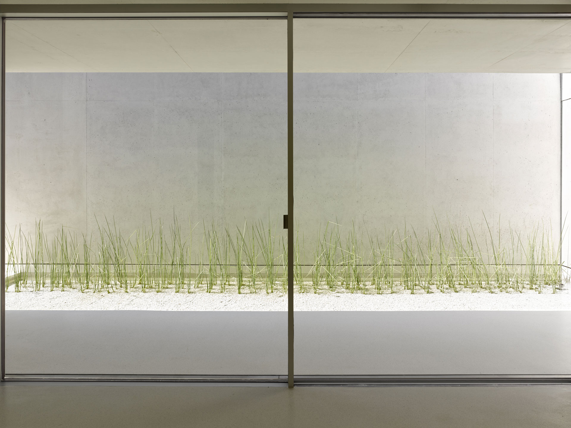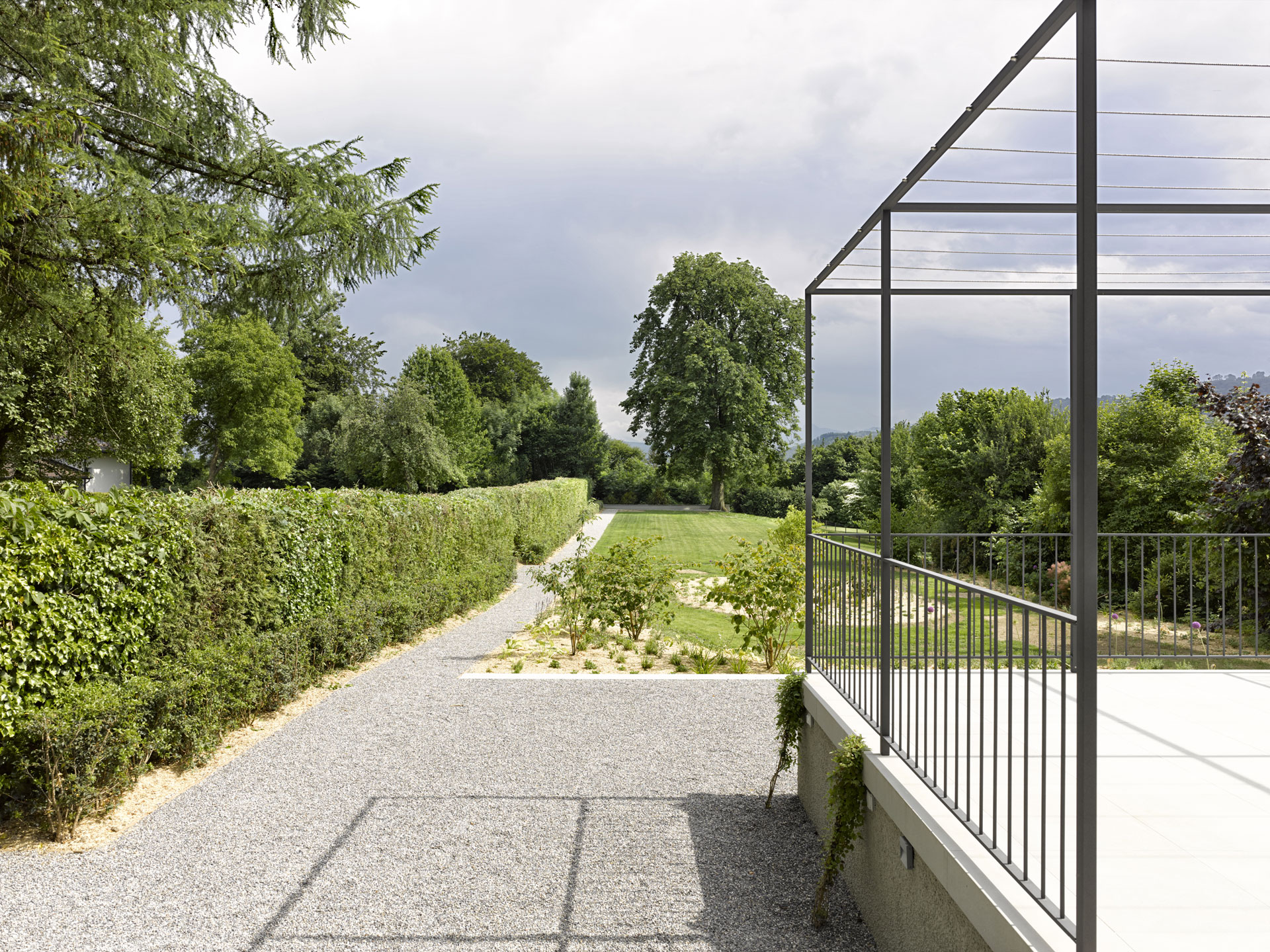 Der unterirdische Gästetrakt tangiert das bestehende Haus und seinen Garten kaum. Einzig das Impluvium, im bepflanzten Eingangsrondell versteckt, und der abgesenkte Gartenhof verbinden die neuen Räume mit dem Park und erzeugen im Innern spektakuläre Lichtstimmungen. Bezüge zu Werken unterschiedlichster Künstler verbinden den Bau auch auf kultureller Ebene mit seinem Umfeld, sei es zu den ʺsky-roomsʺ von James Turell, den Gartenpavillons von Dan Graham oder den Reflexionenspektakeln von Julio Le Parc.