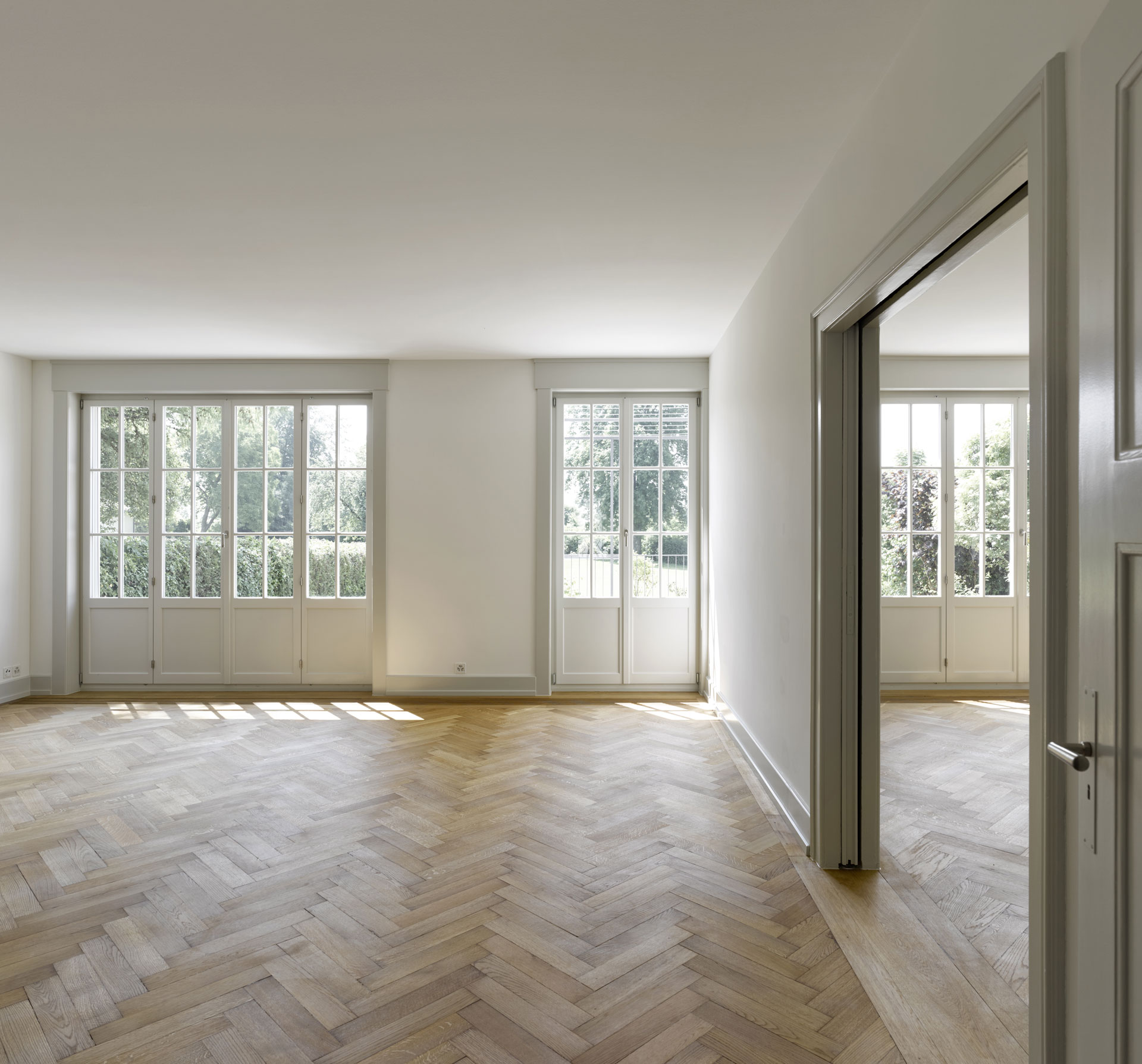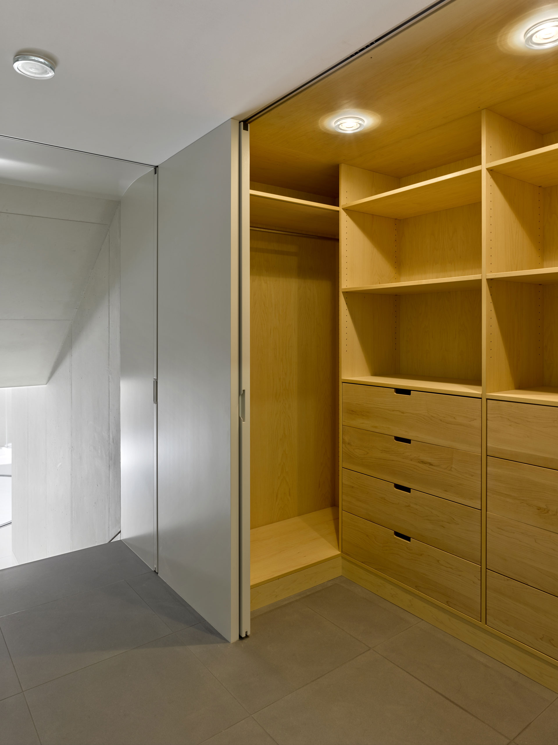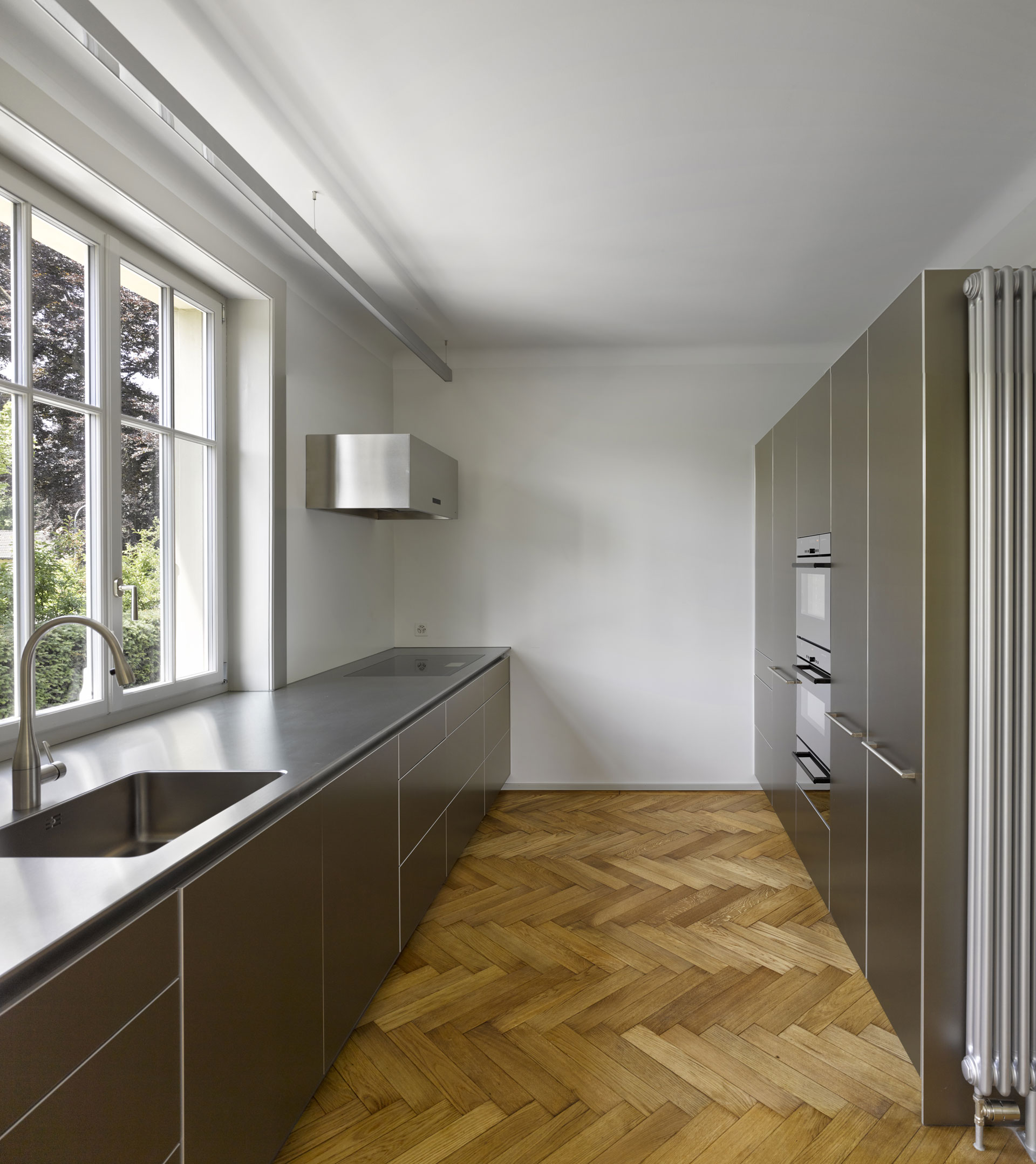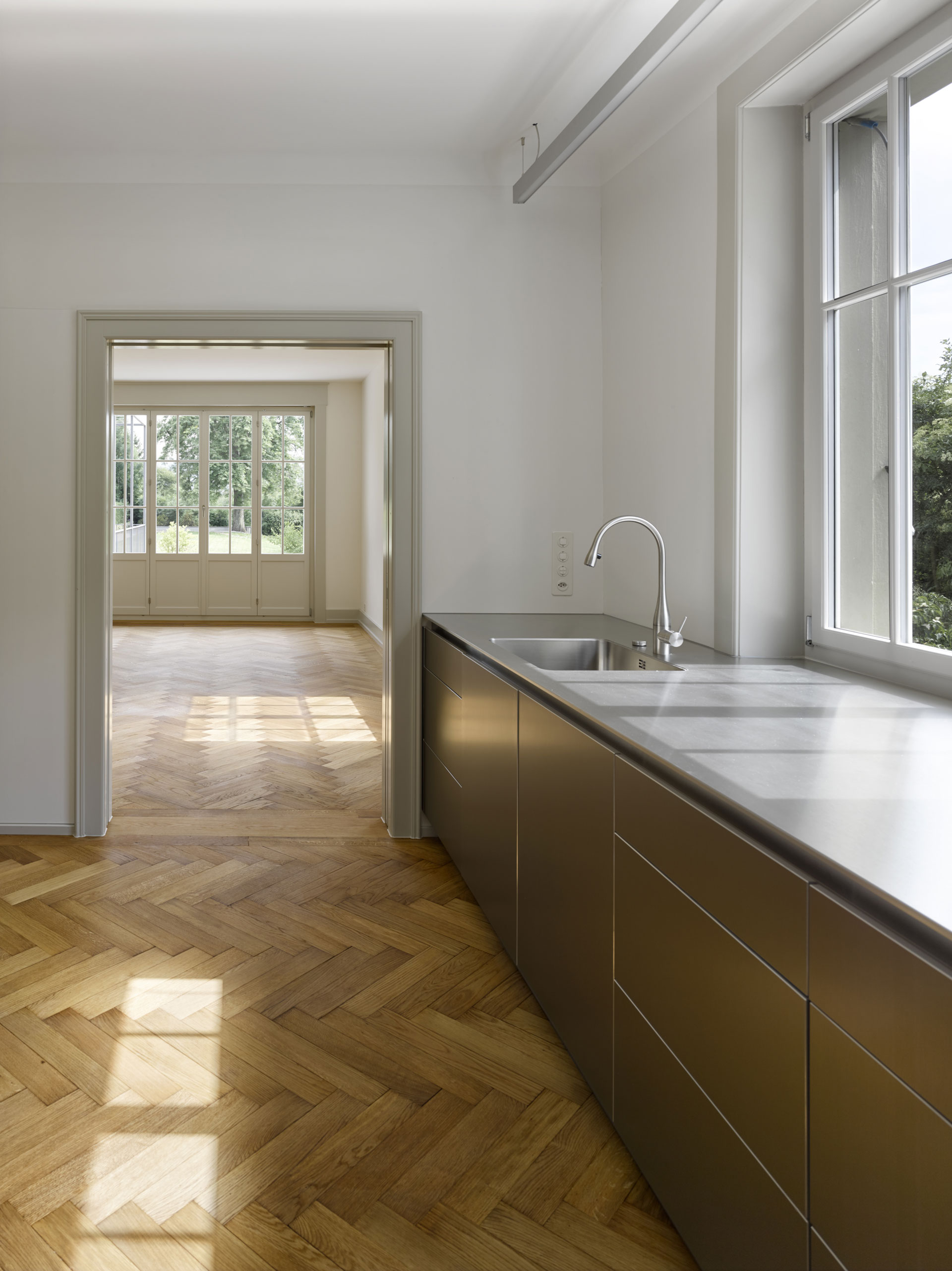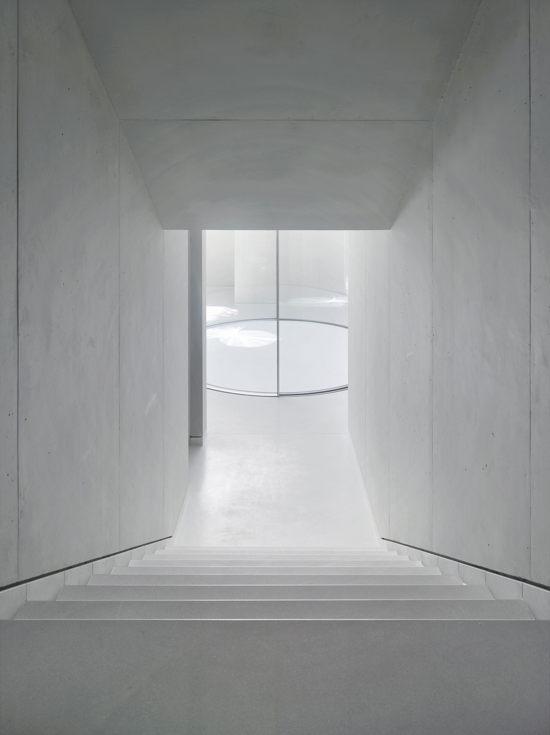 Der unterirdische Gästetrakt tangiert das bestehende Haus und seinen Garten kaum. Einzig das Impluvium, im bepflanzten Eingangsrondell versteckt, und der abgesenkte Gartenhof verbinden die neuen Räume mit dem Park und erzeugen im Innern spektakuläre Lichtstimmungen. Bezüge zu Werken unterschiedlichster Künstler verbinden den Bau auch auf kultureller Ebene mit seinem Umfeld, sei es zu den ʺsky-roomsʺ von James Turell, den Gartenpavillons von Dan Graham oder den Reflexionenspektakeln von Julio Le Parc.