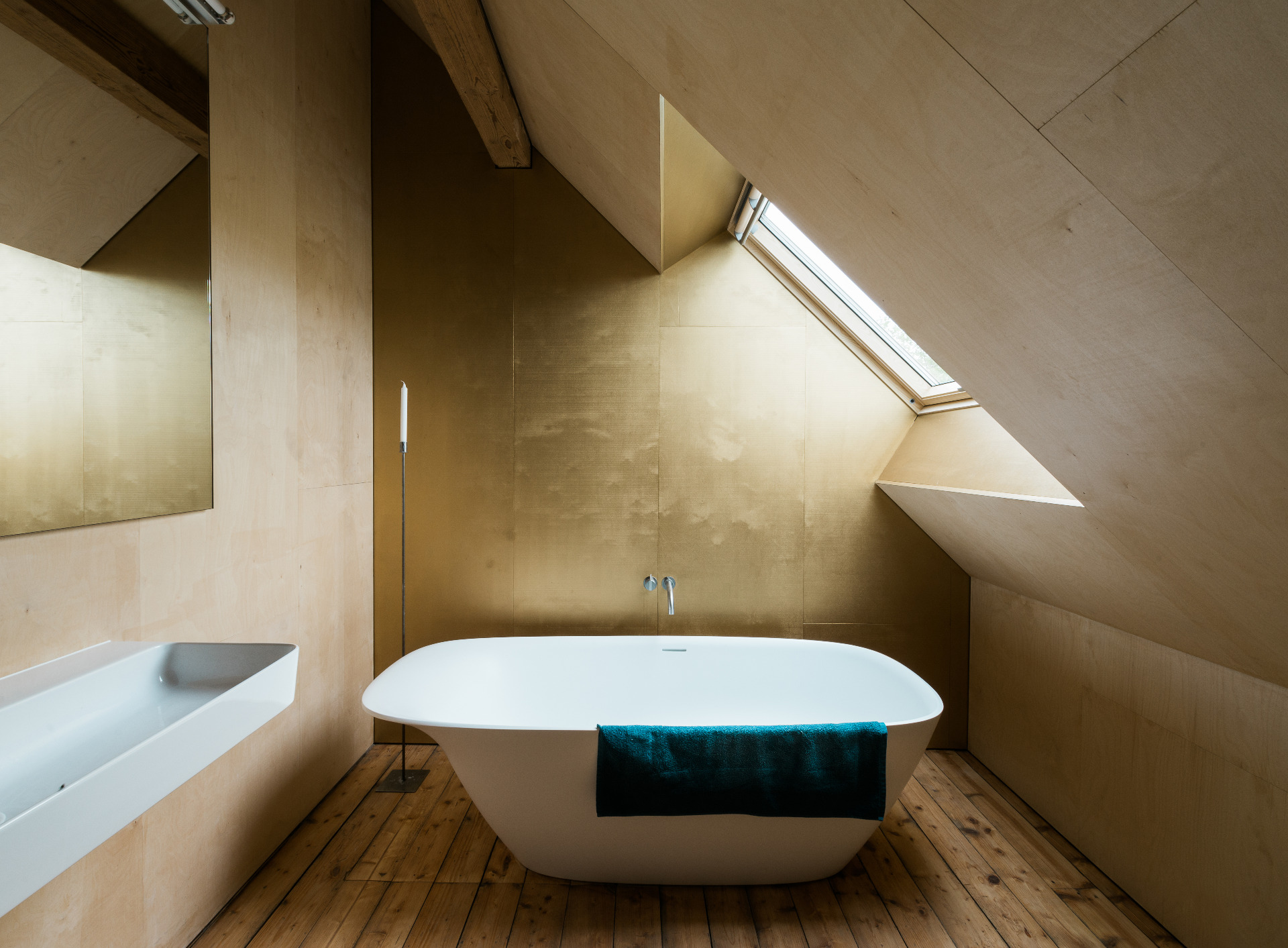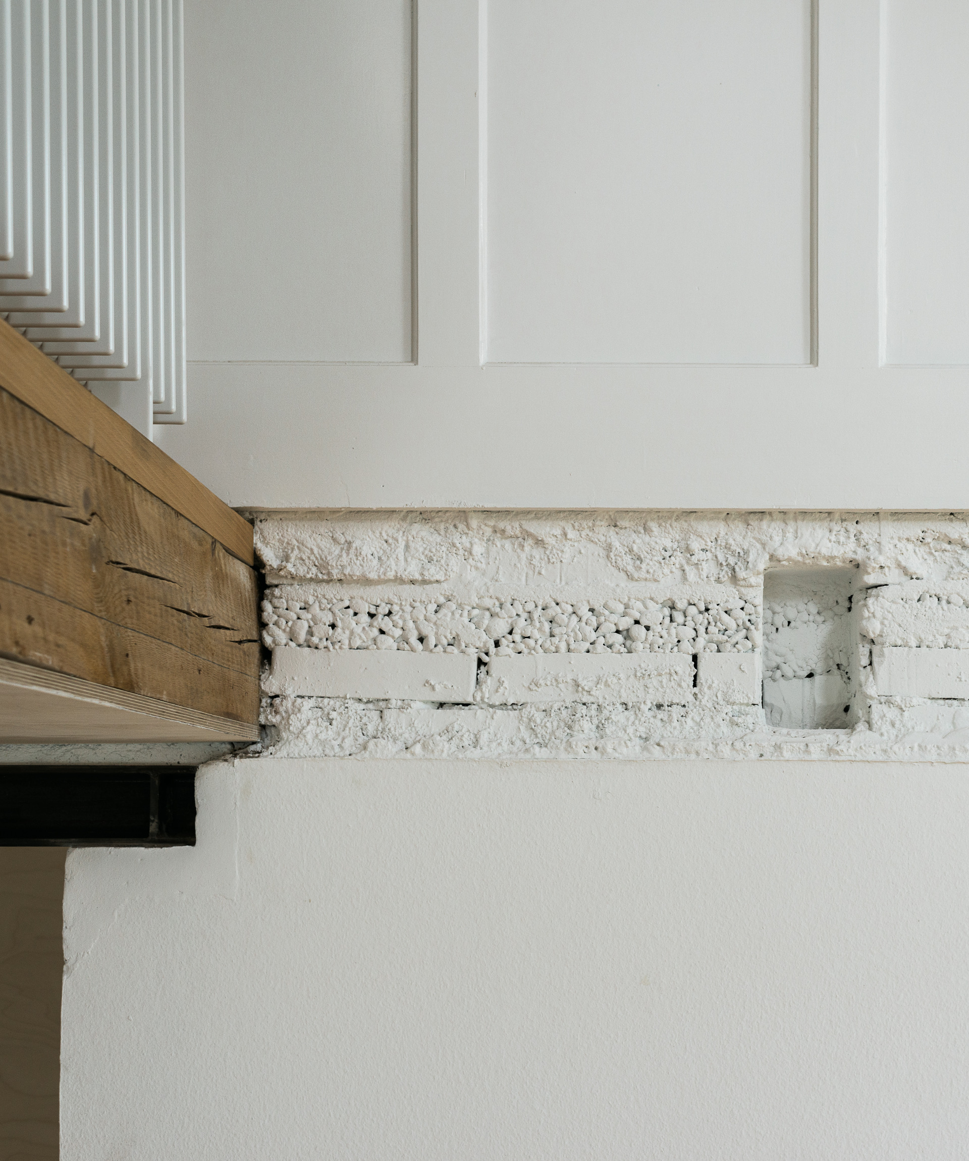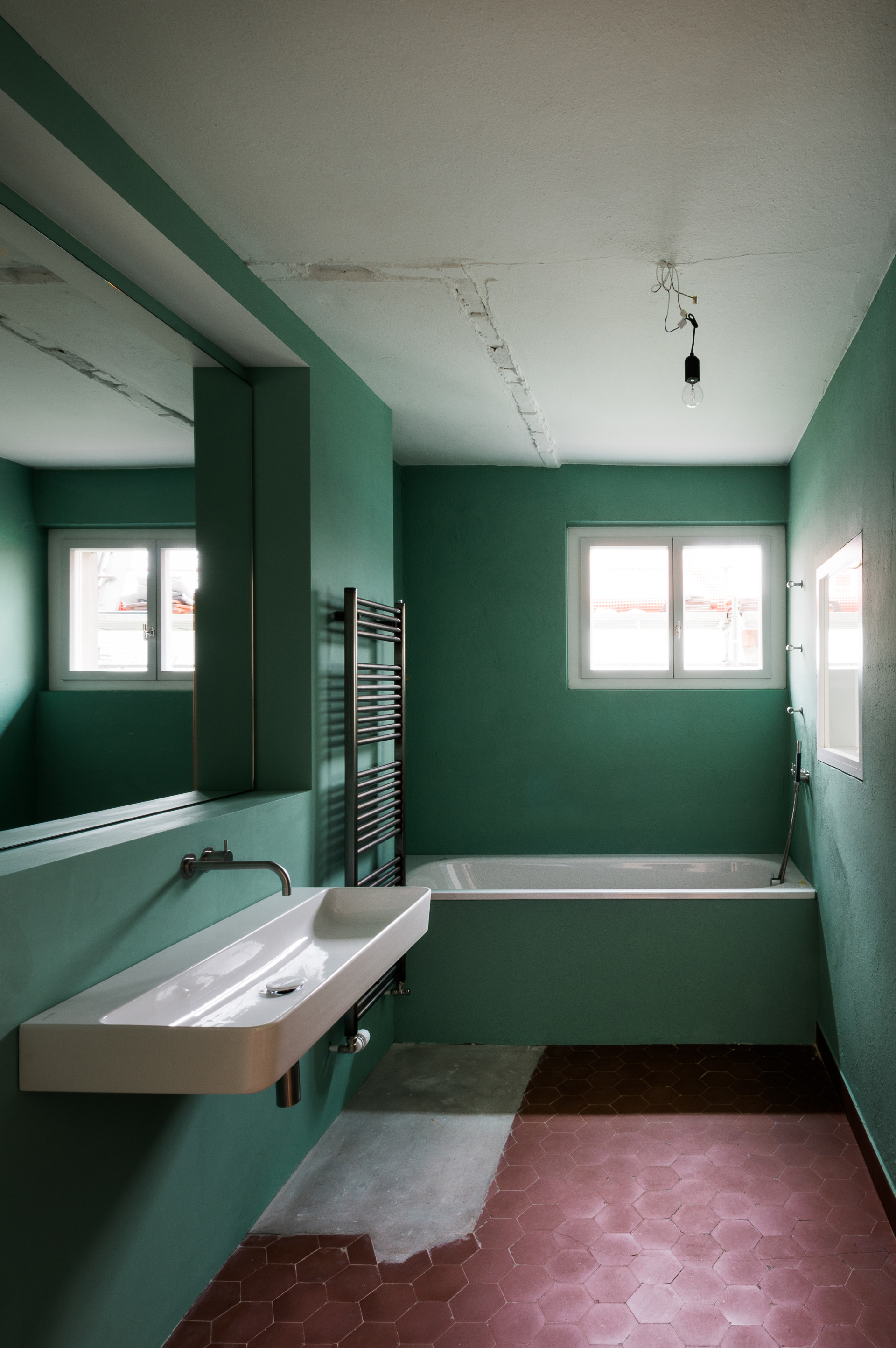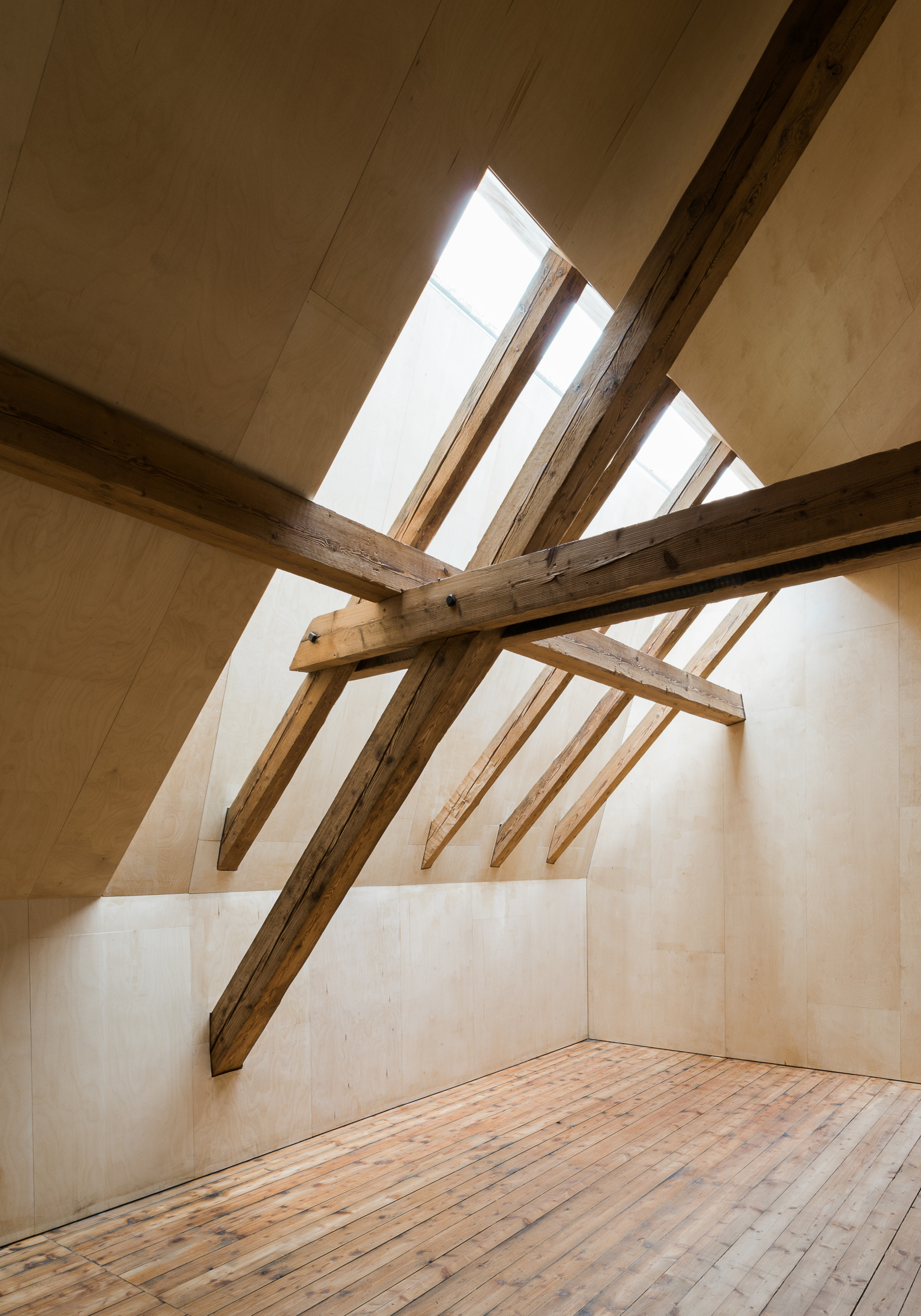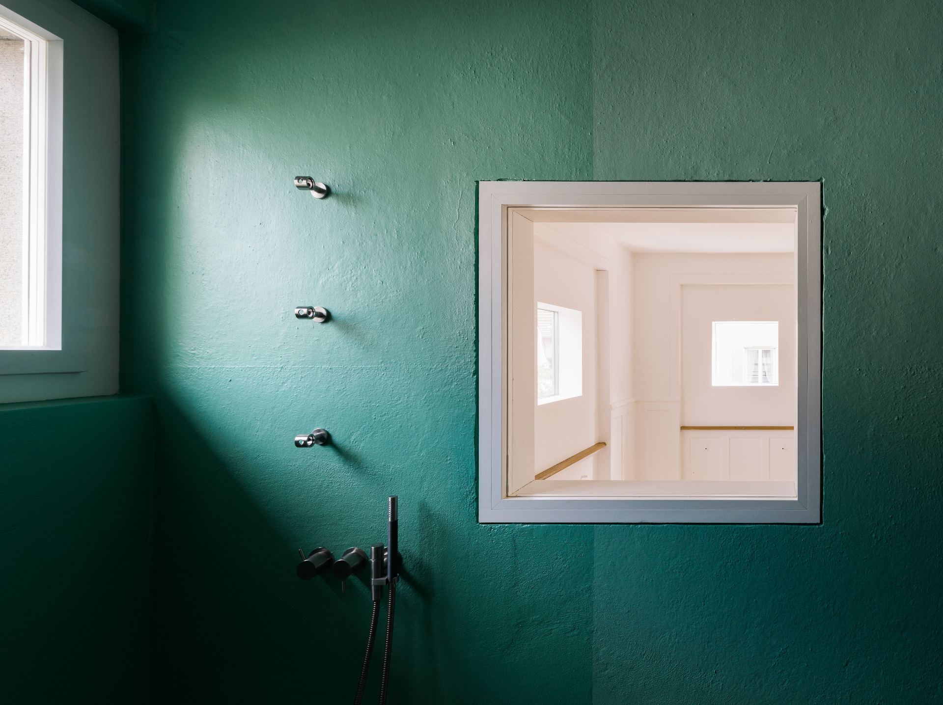 Das Wohnhaus aus den 1930er-Jahren mit zwei kleineren Geschosswohnungen wurde zu einem Einfamilienhaus umgenutzt. Vom Essbereich, dem neuen Zentrum des Hauses, erstreckt sich ein türloses Raumkontinuum über drei Geschosse. Feinjustierte Raumübergänge sowie vielfältige neue Sicht- und Aussenraumbezüge prägen die Atmosphäre. Die Mittel des Eingriffs sind Subtraktion durch präzise Schnitte, Abfangstrukturen aus Stahl wo nötig sowie punktuelle, raumbildende Sperrholzeinbauten. Dabei bleibt der Transformationsprozess sichtbar und ermöglicht ein gleichwertiges Nebeneinander von Bestand, Spuren der Transformation und neuen Elementen. Der identitätsstiftende, radikale Umgang mit dem Bestand zeigt sich so auf zwei Arten: In der Direktheit im Abbruch und der Kompromisslosigkeit im Erhalt.
