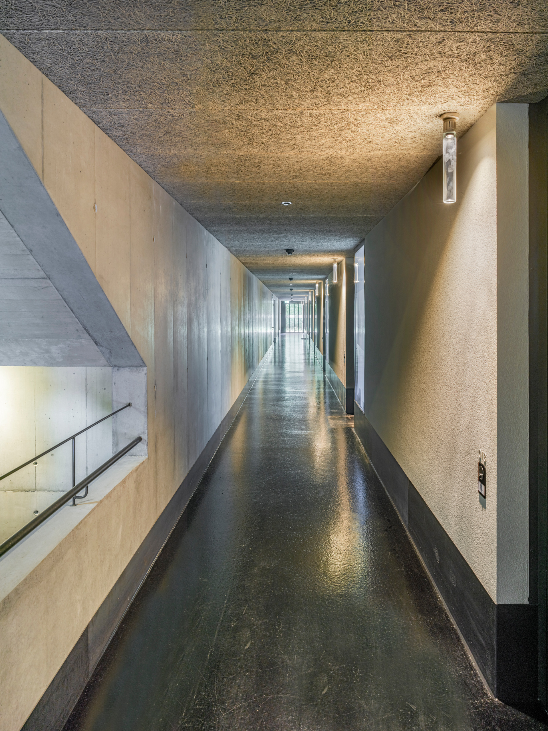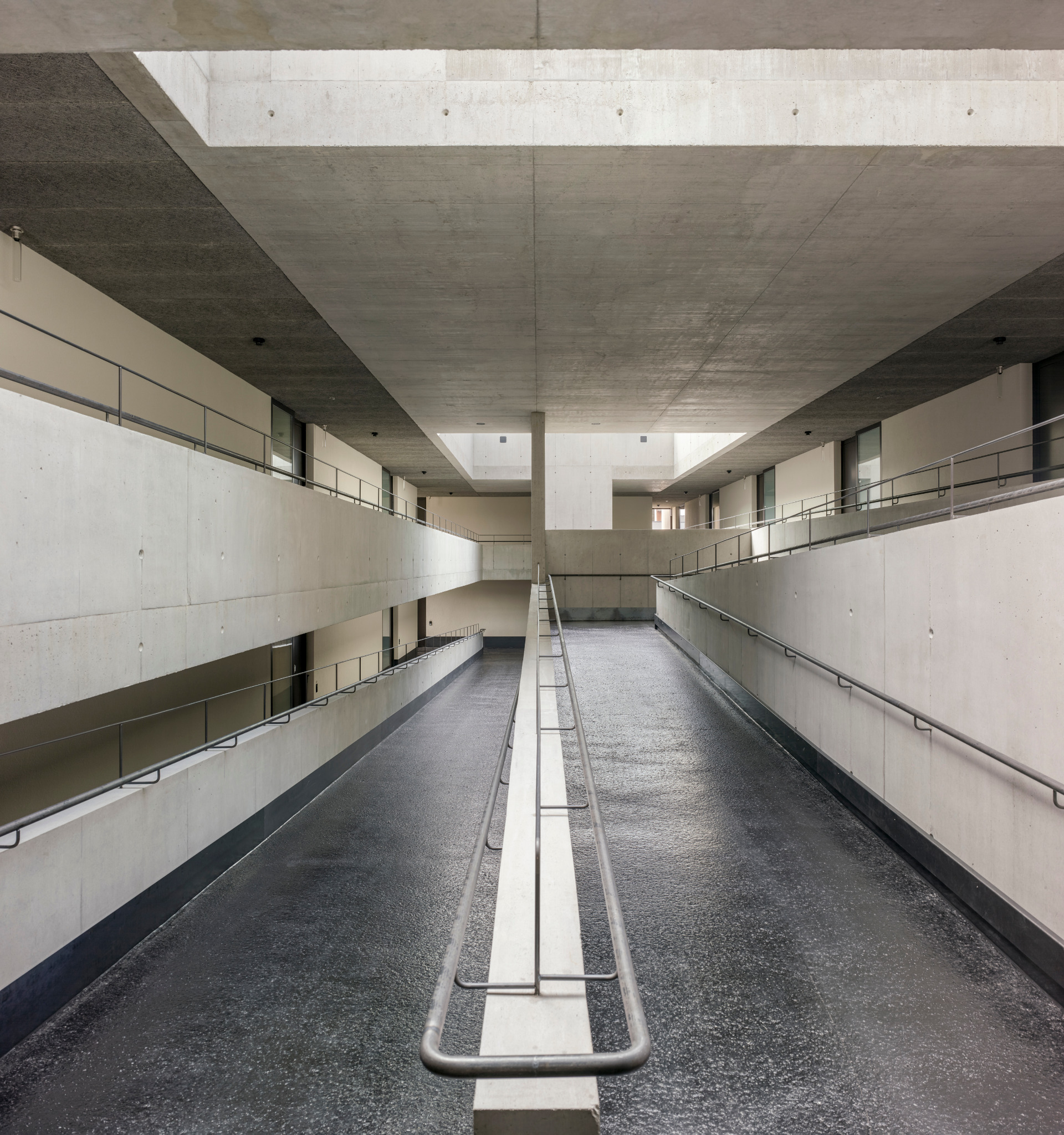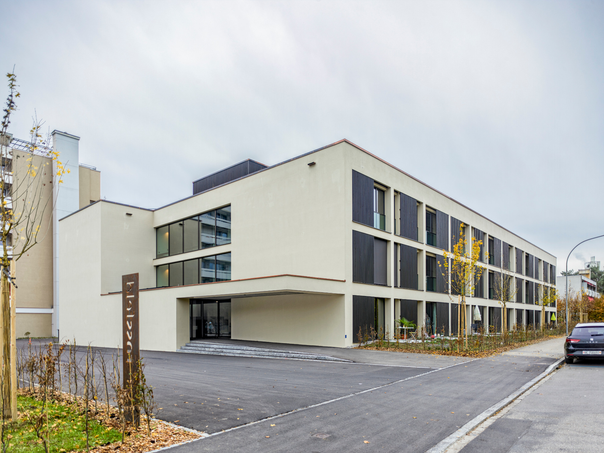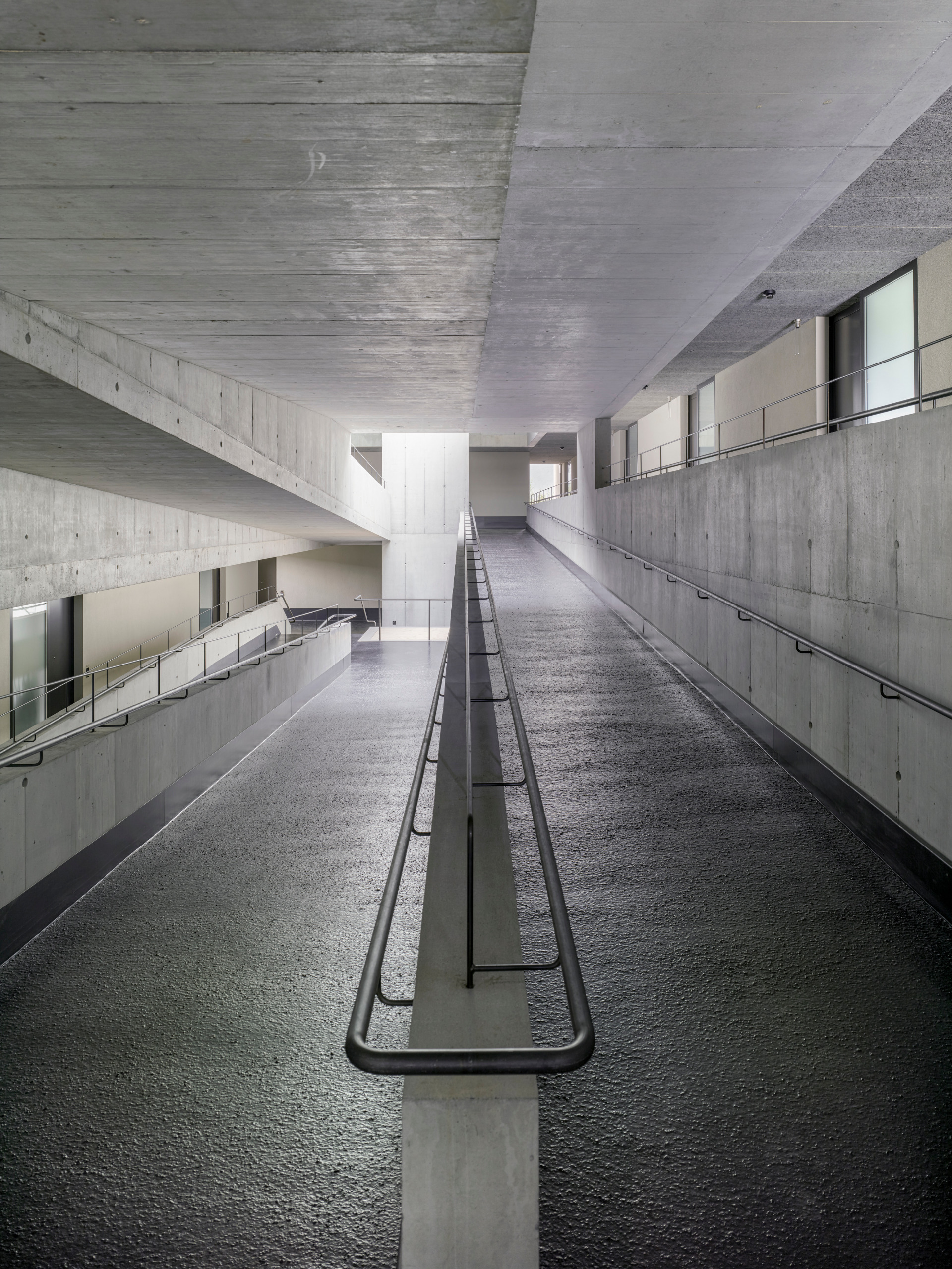Im Rossfeld entstehen 45 Wohnungen für Menschen mit körperlicher Behinderung. Sie richten sich an Personen, die selbständig wohnen, im benachbarten Wohnheim aber punktuell Dienstleistungen beziehen möchten. Die frei geführten Parkwege der Umgebung werden im Gebäudeinnern als attraktive Rampenanlage weitergeführt. Diese rollstuhlgängige Erschliessung aller Wohnungen wird als einladende Begegnungszone zum Zentrum des Hauses und vermittelt den Bewohnern das gewünschte Gefühl von grösstmöglicher Mobilität.