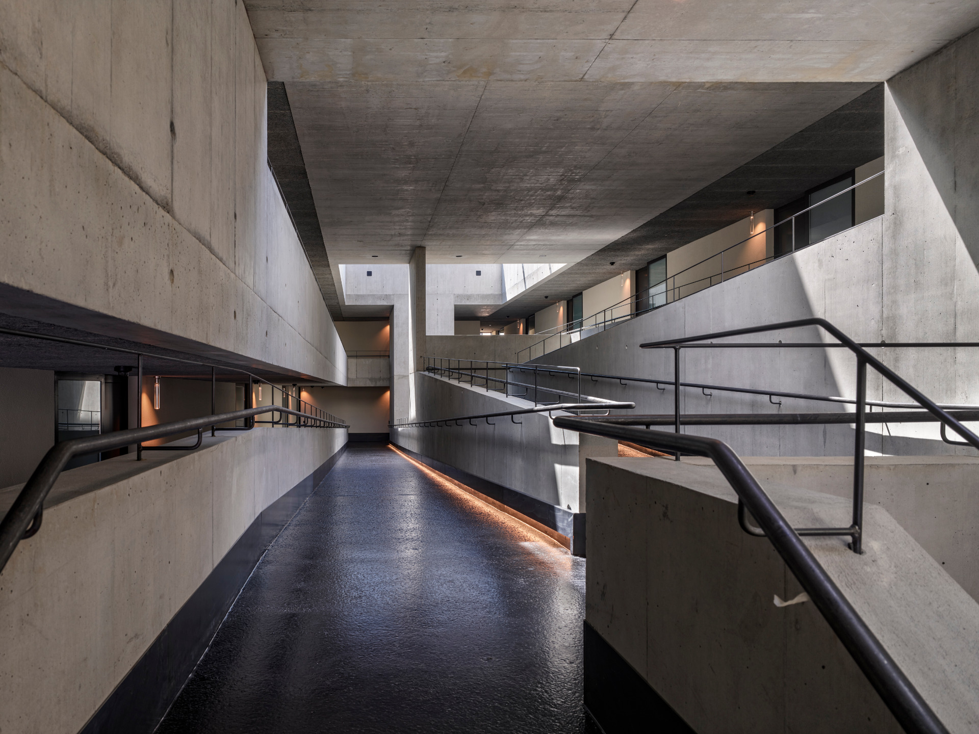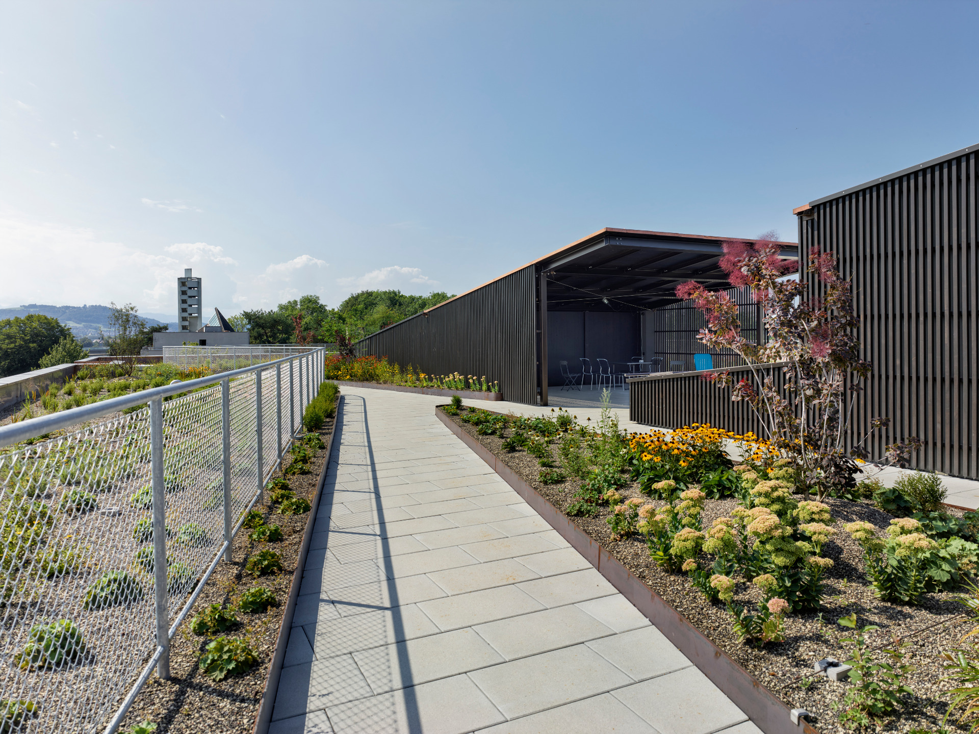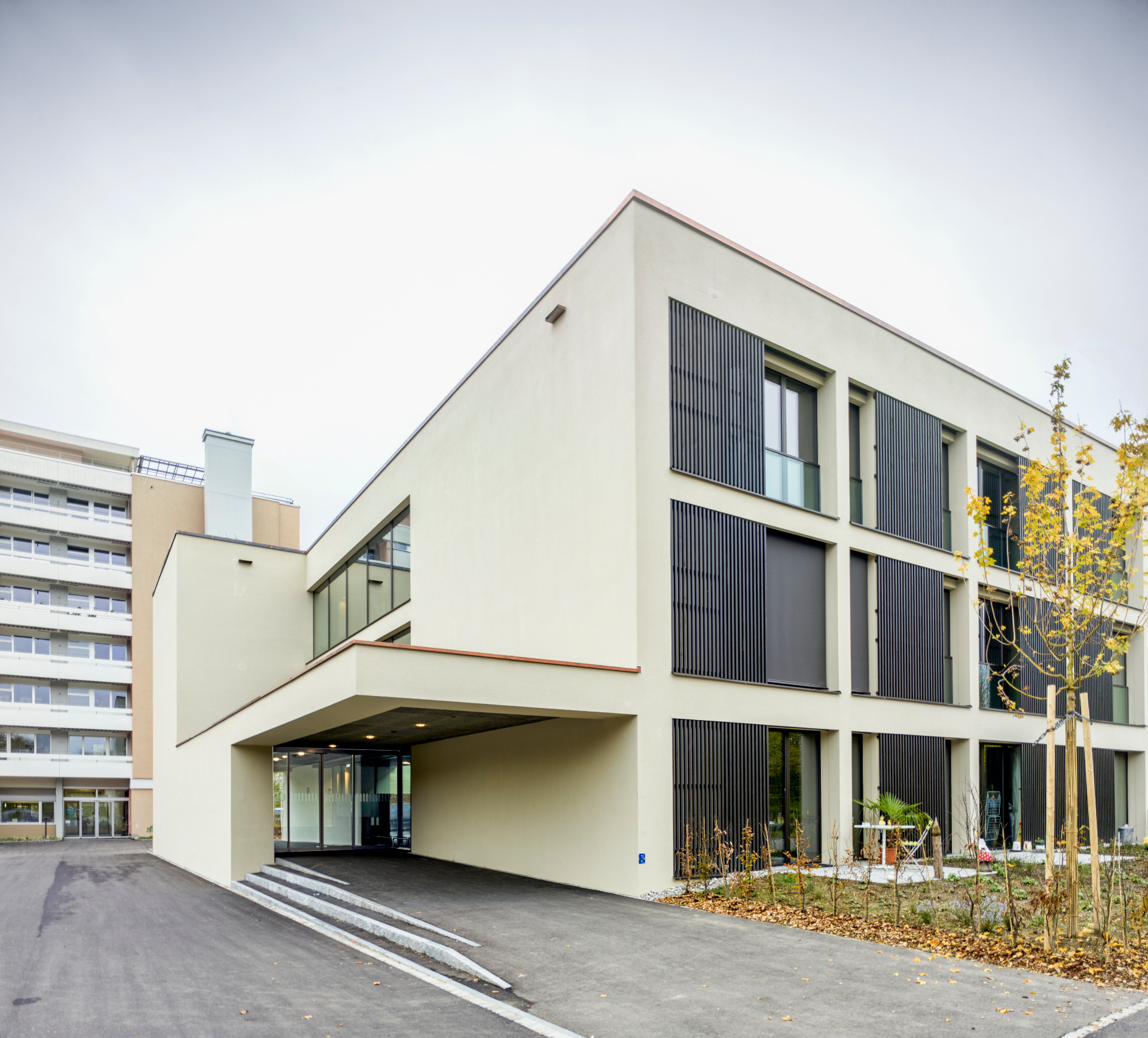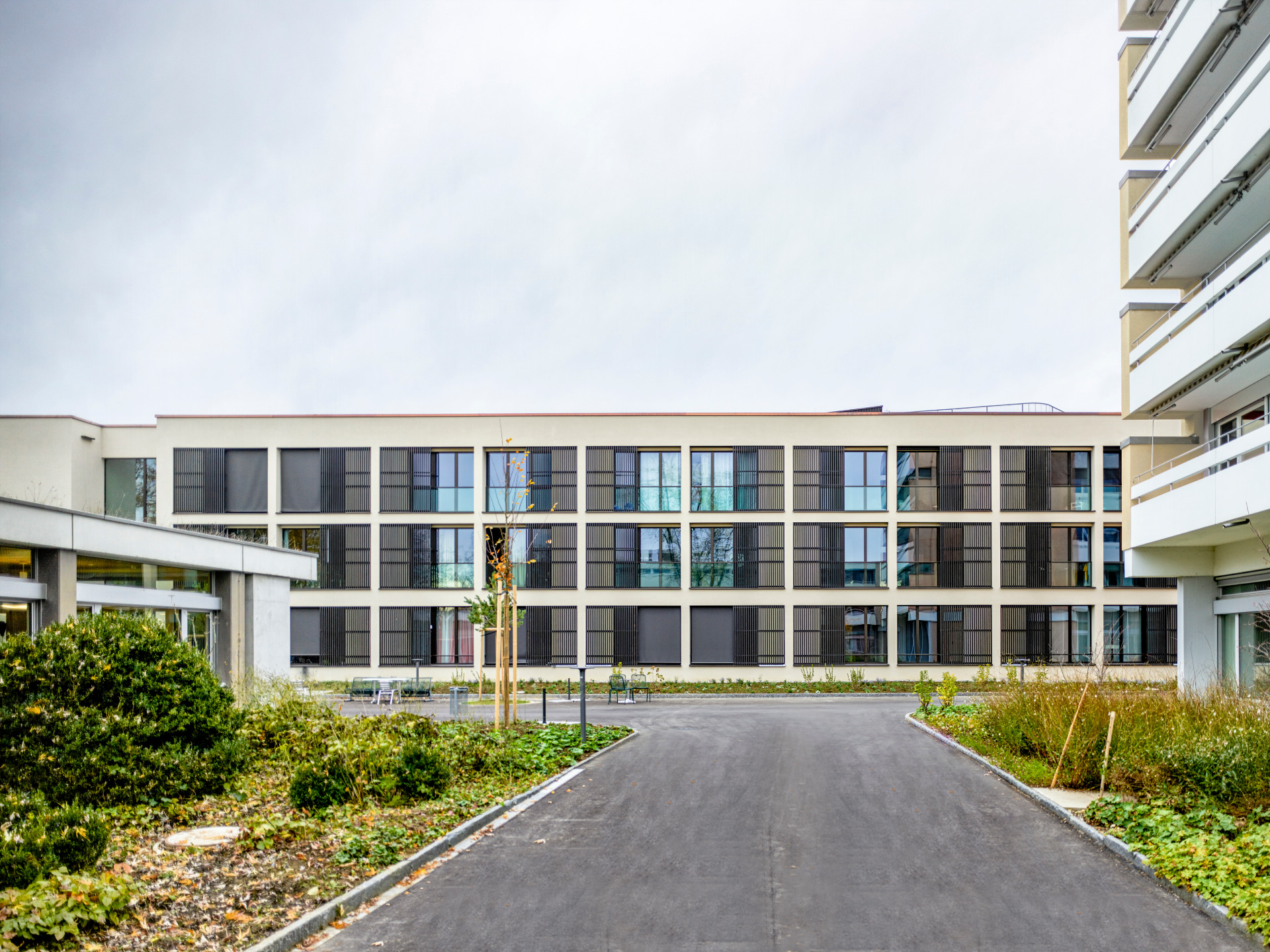 Im Rossfeld entstehen 45 Wohnungen für Menschen mit körperlicher Behinderung. Sie richten sich an Personen, die selbständig wohnen, im benachbarten Wohnheim aber punktuell Dienstleistungen beziehen möchten. Die frei geführten Parkwege der Umgebung werden im Gebäudeinnern als attraktive Rampenanlage weitergeführt. Diese rollstuhlgängige Erschliessung aller Wohnungen wird als einladende Begegnungszone zum Zentrum des Hauses und vermittelt den Bewohnern das gewünschte Gefühl von grösstmöglicher Mobilität.